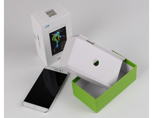 天地蓋手機盒,采用157g銅版紙裱1000g灰板紙,四色印刷,過啞膠,內盒置入成型的坑紙內托此款通用版手機紙盒的整個設計簡單樸素,銅版紙的特性從質感和顏色上都用的恰到好處。廣州駿業包裝廠定制的手機盒,天蓋盒采用了開槽工藝,使得整個盒型顯得十分平整,有棱有角,凸顯高檔氣質。