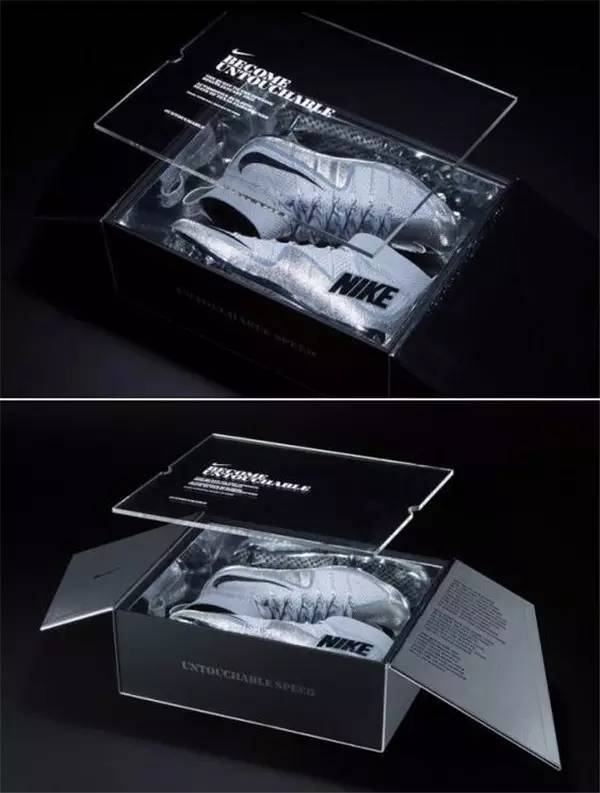 有透明設(shè)計(jì)的鞋盒,可以通過透明的包裝設(shè)計(jì)部分一覽這鞋子的芳容,看到它完好無損你才會(huì)將它收入囊中。