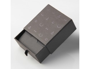 此款首飾包裝盒,采用了常見的開合型翻蓋盒的款式,材質(zhì)是pu皮包膠胚,商標(biāo)燙銀。首飾盒包裝整體用黑色作為底色,醒目的銀色LOGO位于盒子中心,黑白搭配,變得更加簡單和樸素首飾盒選用植絨裱EVA內(nèi)托在保護好產(chǎn)品的同時,也彰顯其高檔大方。