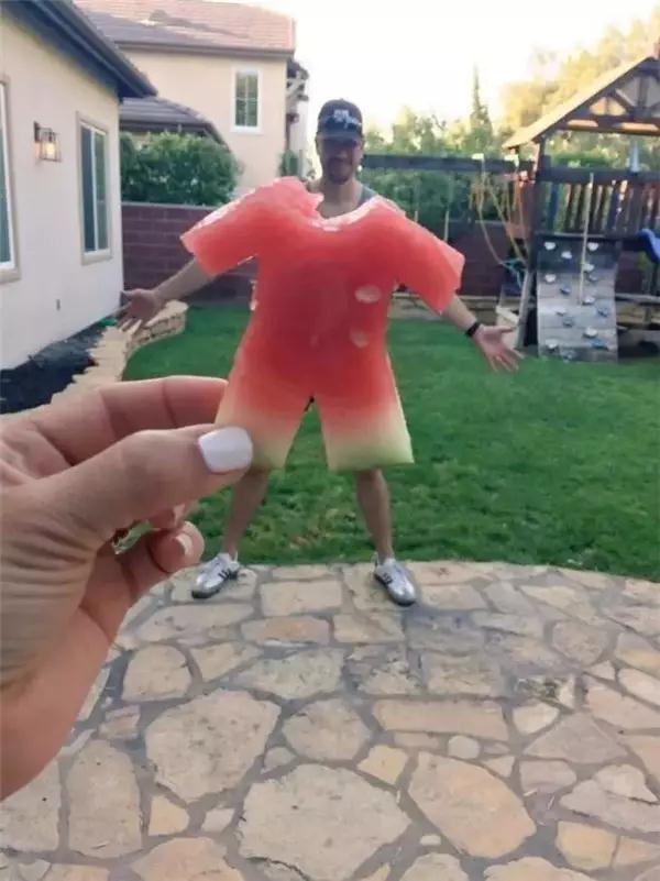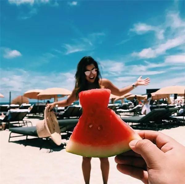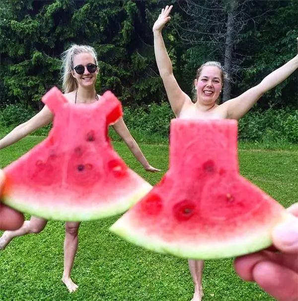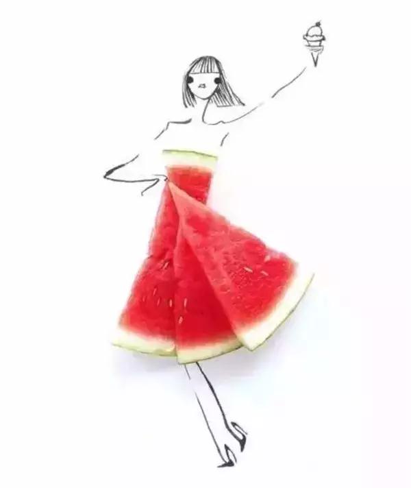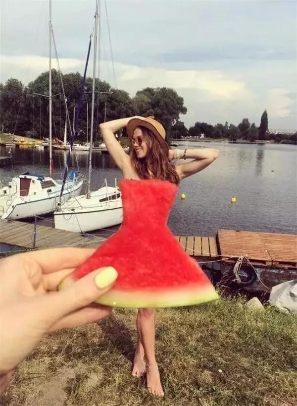 將西瓜切成裙子的形狀,利用巧妙的角度拍攝穿著西瓜裙的照片,看上去涼爽指數(shù)五顆星。嗯,吃個(gè)西瓜還要那么有藝術(shù)感,這才是生活啊!如果怕自己的畫畫功力不夠,那沒關(guān)系,你可以學(xué)下面的這些玩法,簡(jiǎn)單粗暴。