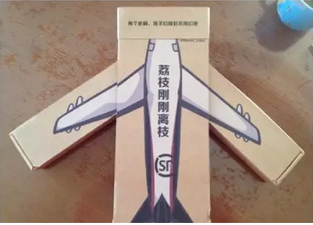 順豐優選的荔枝包裝,用包裝盒可組合成飛機形狀,不僅能體現出順豐空運速度,同事給受眾驚喜,產生分享。