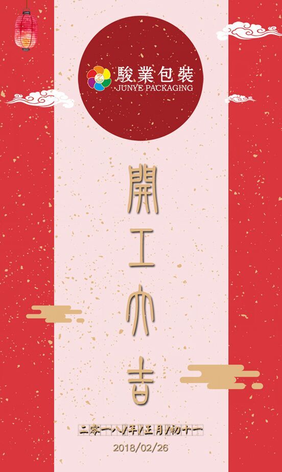 廣州駿業(yè)包裝盒廠家祝各位客戶、朋友,新年開工大吉,給大家拜晚年,希望在接下來的2018各位都豬籠入水,身體健康。2018年歡迎新老客戶的合作,共同雙贏。