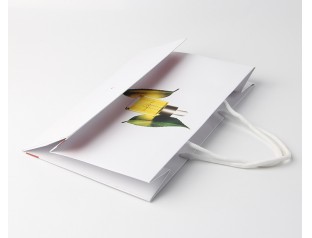 此款紙袋包裝采用250g單銅紙,四色印刷,過啞膠,紙袋提手處采用尼龍圓繩。紙袋包裝設計走的是小清新風格,以白色作為主打色,印刷其他黃色和紅色作為點綴,簡約大方駿業紙袋包裝采用優良材質,流程機械化與人工相結合,免費設計,量身定制打造中高檔化妝品紙袋包裝。