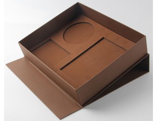 這個襯衫包裝盒定制使用1100克灰板紙為內紙,裱紙為157克雙銅紙,覆啞膜;因為是用來裝襯衫的包裝盒,所以尺寸比較大,而又因為襯衫是端莊、大氣的商品,所以包裝盒的設計也不需要太過浮夸,簡簡單單就好;雙銅紙?zhí)烊坏募±斫o人環(huán)保又不失單調的感覺,無需過多的雕琢鑲嵌就充滿貴族的氣質,棕色的色調又為盒子增添一份高貴感。